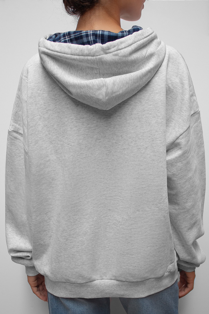 Hoodie with 77 patch, front pockets, long sleeves, long length, relaxed fit.
