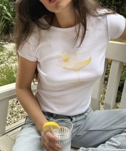 T-shirt with Cocktail print, crew neck, short sleeves, regular length, relaxed fit.