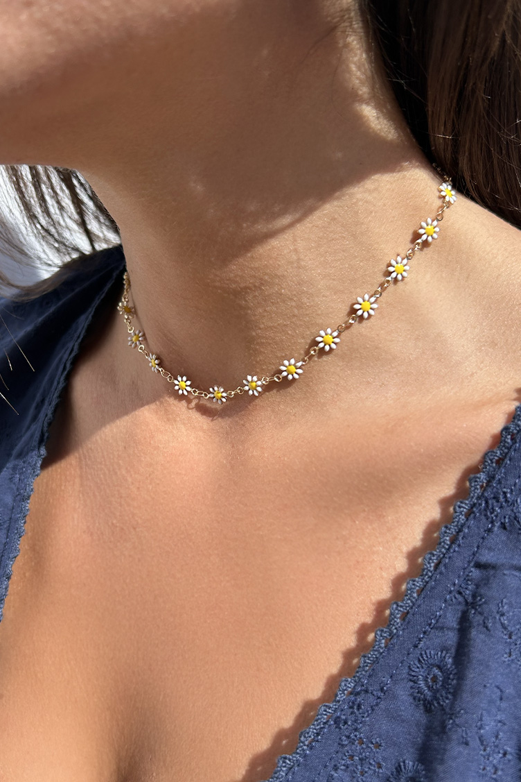 Choker necklace, with flowers, lobster clasp closure, adjustable length.