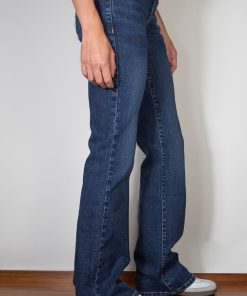 Flared pants, low waits, 4 pockets, belt loops, back pockets with embroidery, button up and zip fastening, regular length, slim fit.
