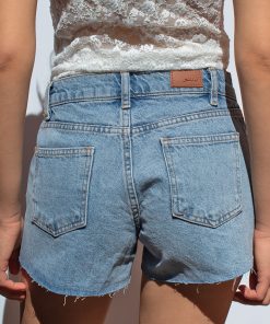 Low waist shorts, 4 pockets, belt loops, raw edge hem, button up and zip fastening, regular length, slim fit.