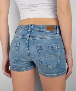 Low waist shorts, 4 pockets, belt loops, back pockets with embroidery, button up and zip fastening, regular length, slim fit.