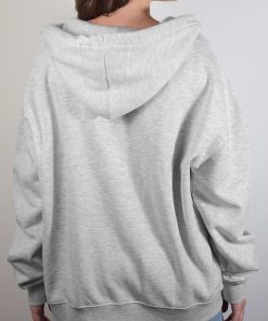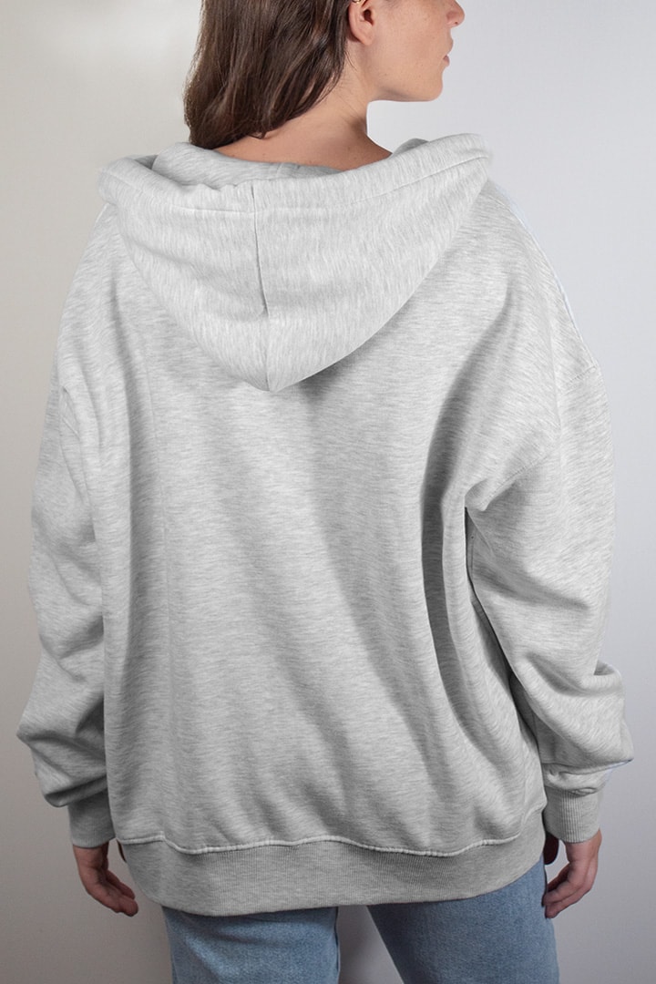 Oversized hoodie, front zip, front pockets, long sleeves, regular length, oversized fit.