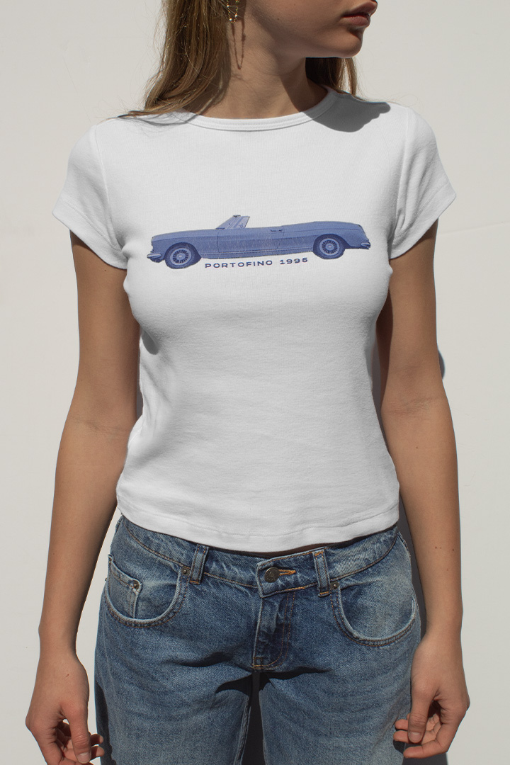 T-shirt with Portofino print, crew neckline, short sleeves, regular length, relaxed fit.