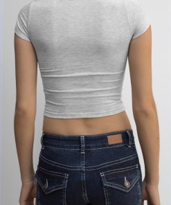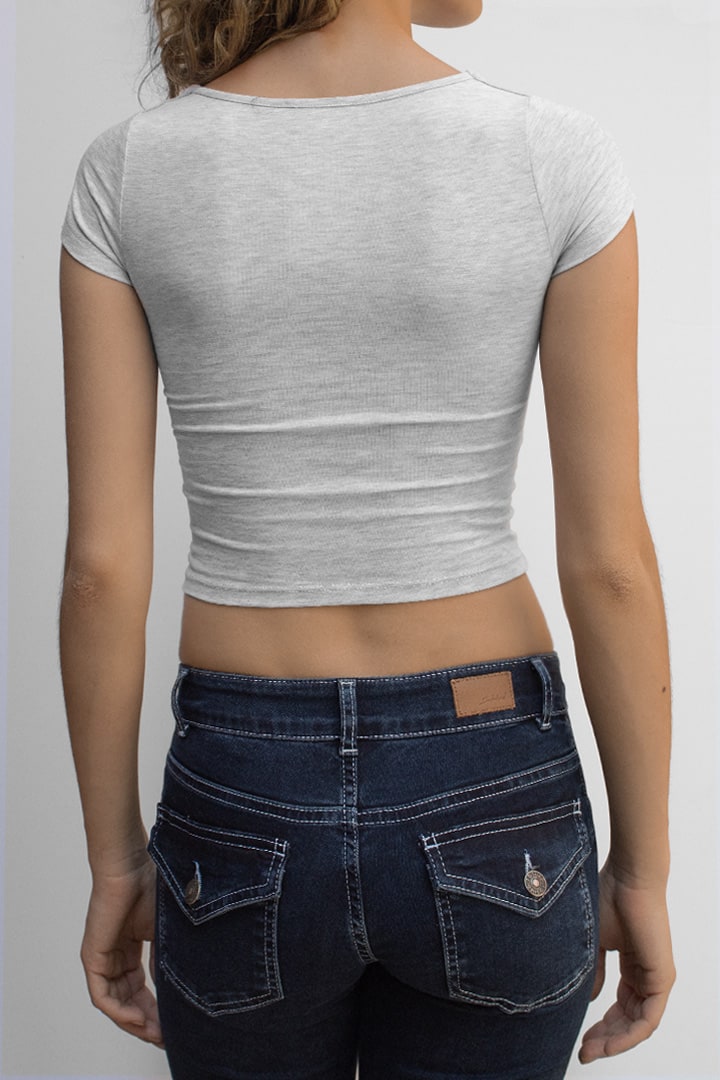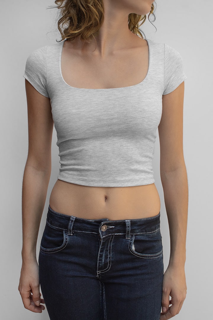 Square neck crop t-shirt, short sleeves, crop length, slim fit.