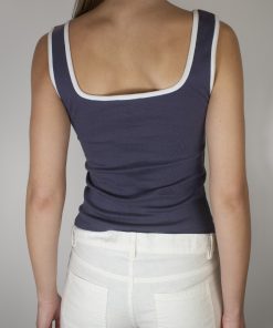 Square neckline tank top, sleeveless, regular length, slim fit.