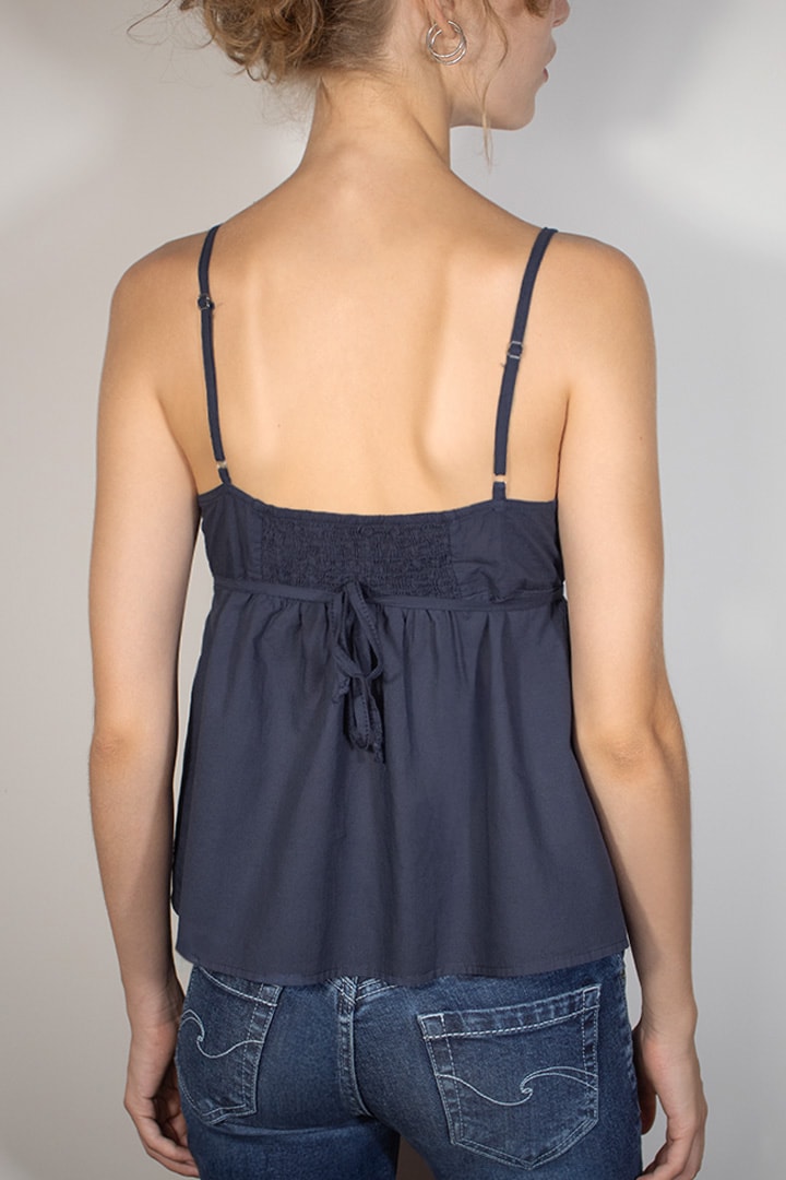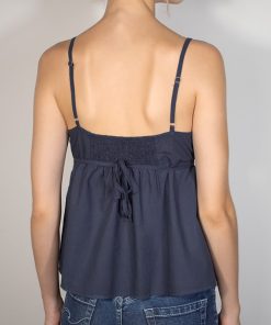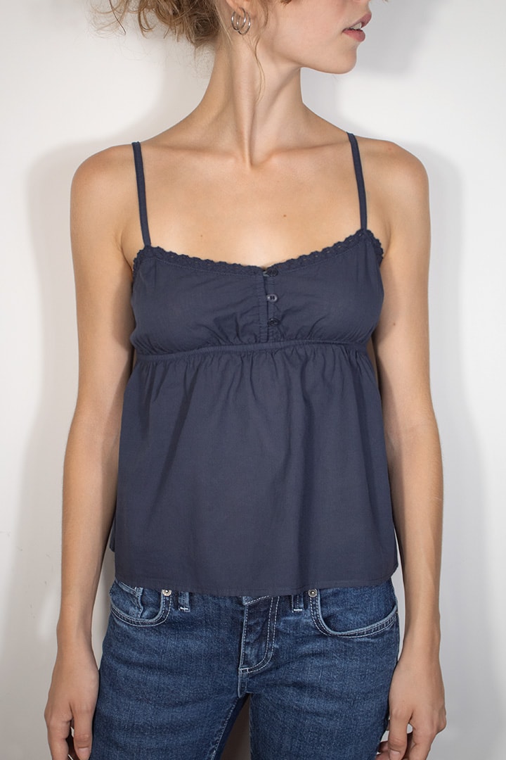 Tank top with buttons, V neckline, with adjustable straps, regular length, relaxed fit.