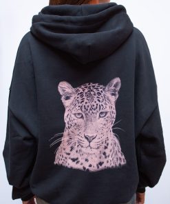 Hoodie with Wild Baby and tiger print, front pockets, long sleeves, long length, relaxed fit.